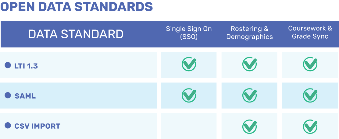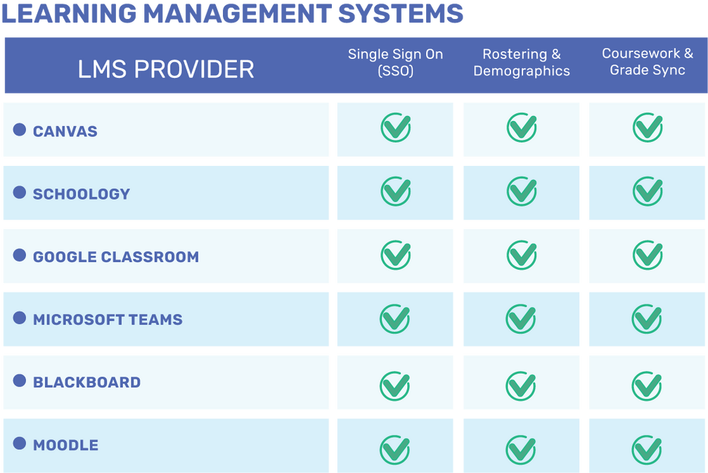 This matrix lists the platforms that the ADI Learning Hub integrates with and which functionality is available with each platform. It is updated regularly as we improve our product.